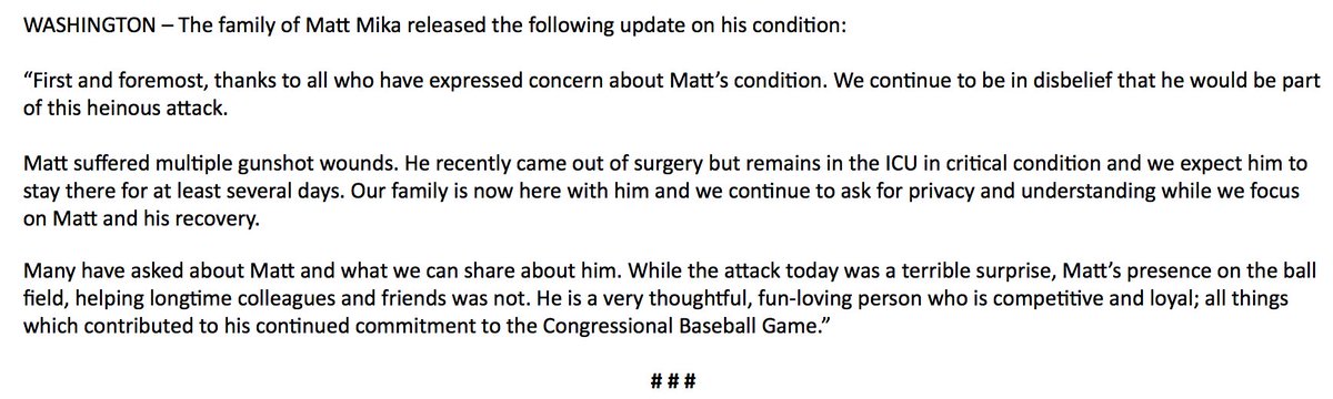 MORE: Family of Matt Mika say he is out of surgery and in ICU, where they expect him to remain for several days. http://abcn.ws/2ssfLq6http://abcn.ws/2ssfLq6 …pic.twitter.com/6GWCnhuVyz