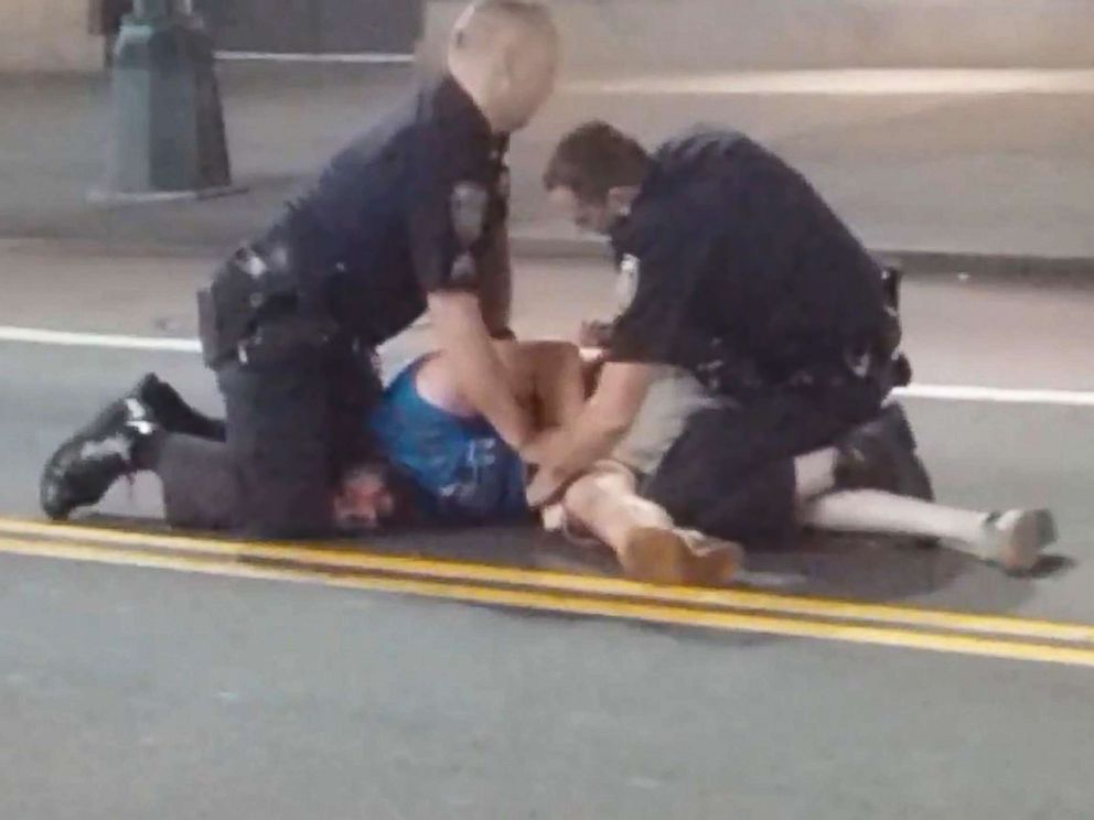 Shocking! Cops beating up a restrained prisoner. Next thing you know they'll be shooting people in the back - and getting away with it!