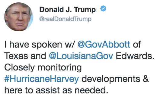@realDonaldTrump says just build a wall to keep hurricane Harvey out.Thanks. Twitter will use this to make your timeline better. UndoUndo
