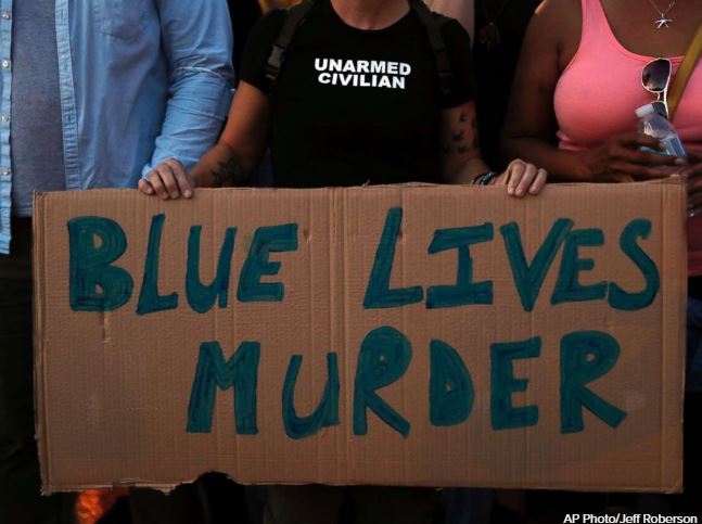 The person holding the sign should participate in a shoot don't shoot simulator understand what the police face daily