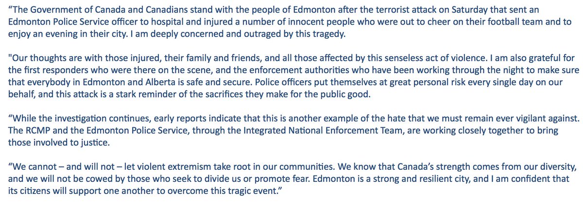 MORE: @JustinTrudeau: “Canadians stand with the people of Edmonton." http://abcn.ws/2fBABee pic.twitter.com/R1Nr9r6IZH