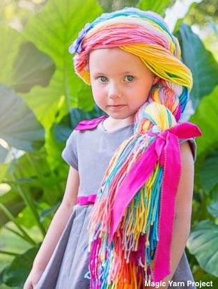 Awww. What a thoughtful project. She's adorable and her "magic yarn" wig is long and beautiful.