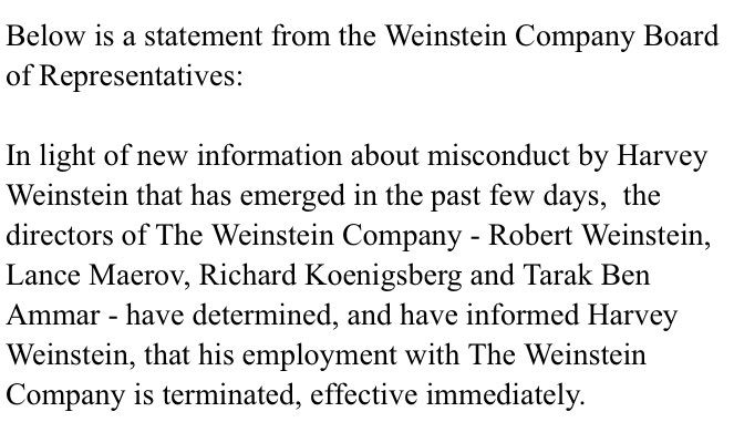 Remember: The Weinstein Company didn't fire Harvey because they found out he was a sexual predator. They fired him because WE found out.