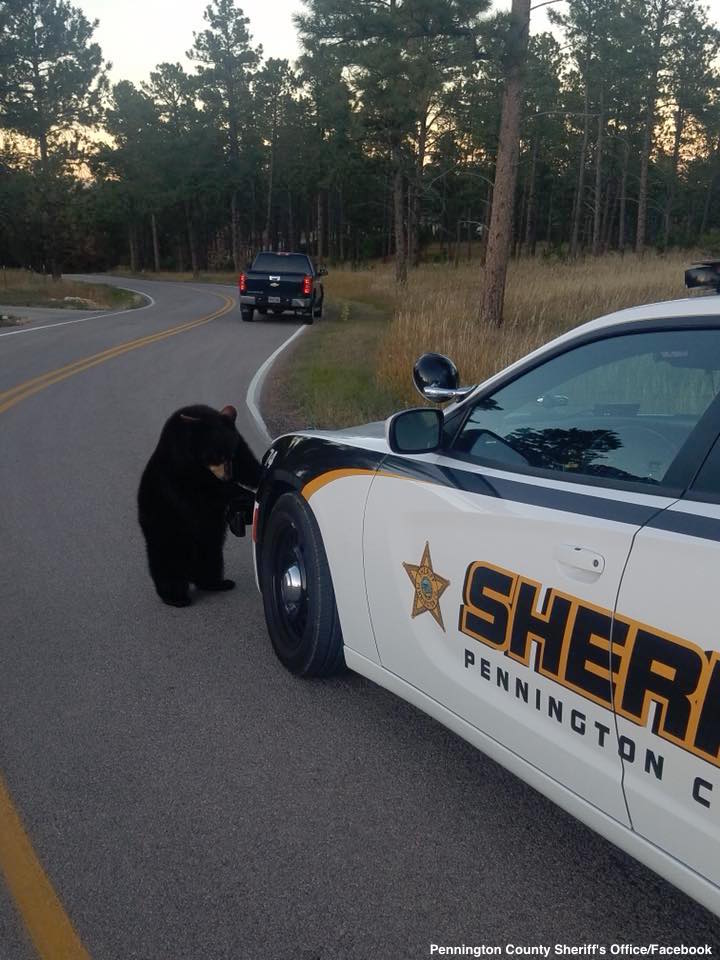 Yes, the bear was within it's right to check out the deputy's car,and done with precision,that's a smart bear.
