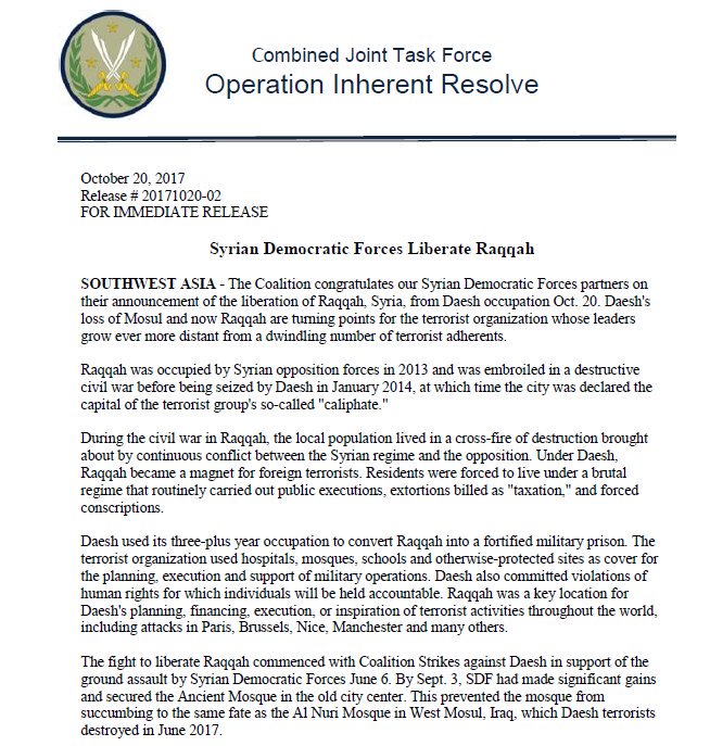 Operation Inherent Resolve releases statement saying US-backed Syrian force have declared victory over ISIS in Raqqa http://abcn.ws/2gUzFmd pic.twitter.com/ruTBLvxnJX