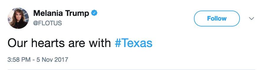 MORE: "Our hearts are with Texas," first lady Melania Trump tweets after church shooting. http://abcn.ws/2AmuMdE pic.twitter.com/PB85NZv9ky