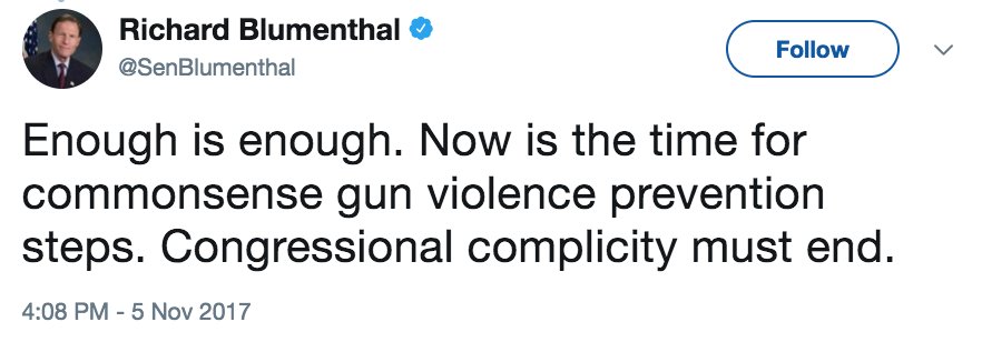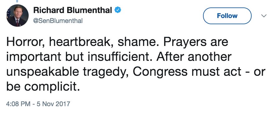 MORE: Sen. Richard Blumenthal of Connecticut: "After another unspeakable tragedy, Congress must act—or be complicit" http://abcn.ws/2AmuMdE pic.twitter.com/Uxo5zzwUPJ
