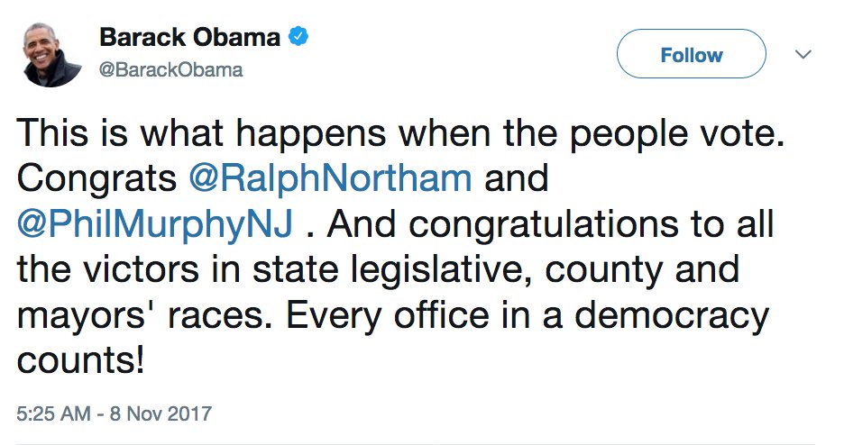 Hmm didn't know Trump was on the ballots in Virginia and NJ yesterday dang did I miss something Thought the President was for 4 Years