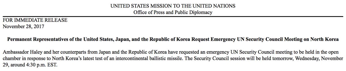 LATEST: U.N. Amb. Nikki Haley and ambassadors from Japan and South Korea to hold emergency meeting of U.N. Security Council tomorrow. http://abcn.ws/2k8KXI0 pic.twitter.com/IuYs8nzhuF