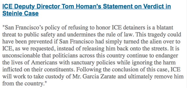 ICE deputy director on Steinle verdict: "Following the conclusion of this case, ICE will work to take custody of Mr. Garcia Zarate and ultimately remove him from the country." http://abcn.ws/2AmOsyI pic.twitter.com/sXdJhB8zul