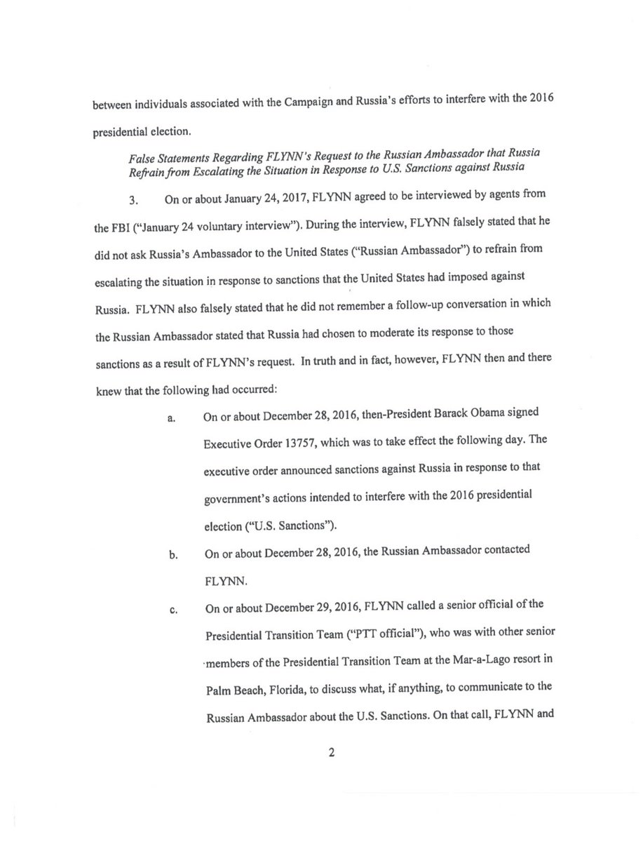 @realDonaldTrump should be very worried. Flynn admitted that he was directed by "very high members of the Trump Transition team to communicate with Russia." -