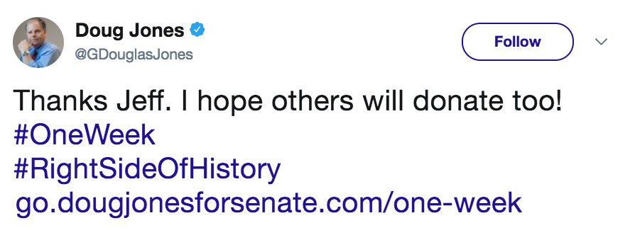 I donated $100 Doug Jones today too! After reading this I may do it again tomorrow!