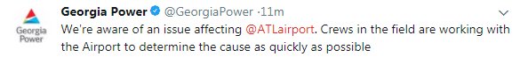 UPDATE: @GeorgiaPower tweets that they are now working with @ATLairport to determine the cause of a power outage grounding flights at the busiest airport in the world. http://abcn.ws/2BBtNdk pic.twitter.com/2TnzIsfghi