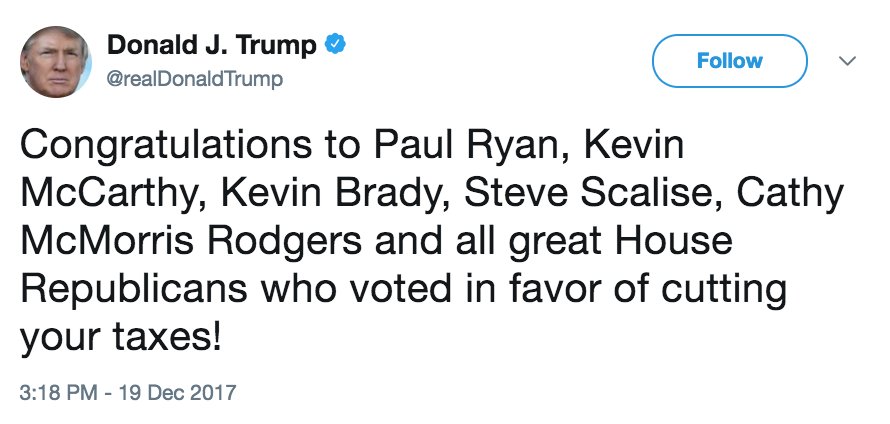 BREAKING: House of Representatives passes GOP tax bill, 227-203. It next heads to the Senate. http://abcn.ws/2oLRFWj pic.twitter.com/Qobukgqiut