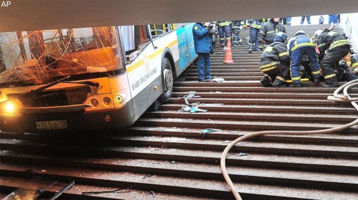 Bus got stopped before reaching the base of the stairwell. -