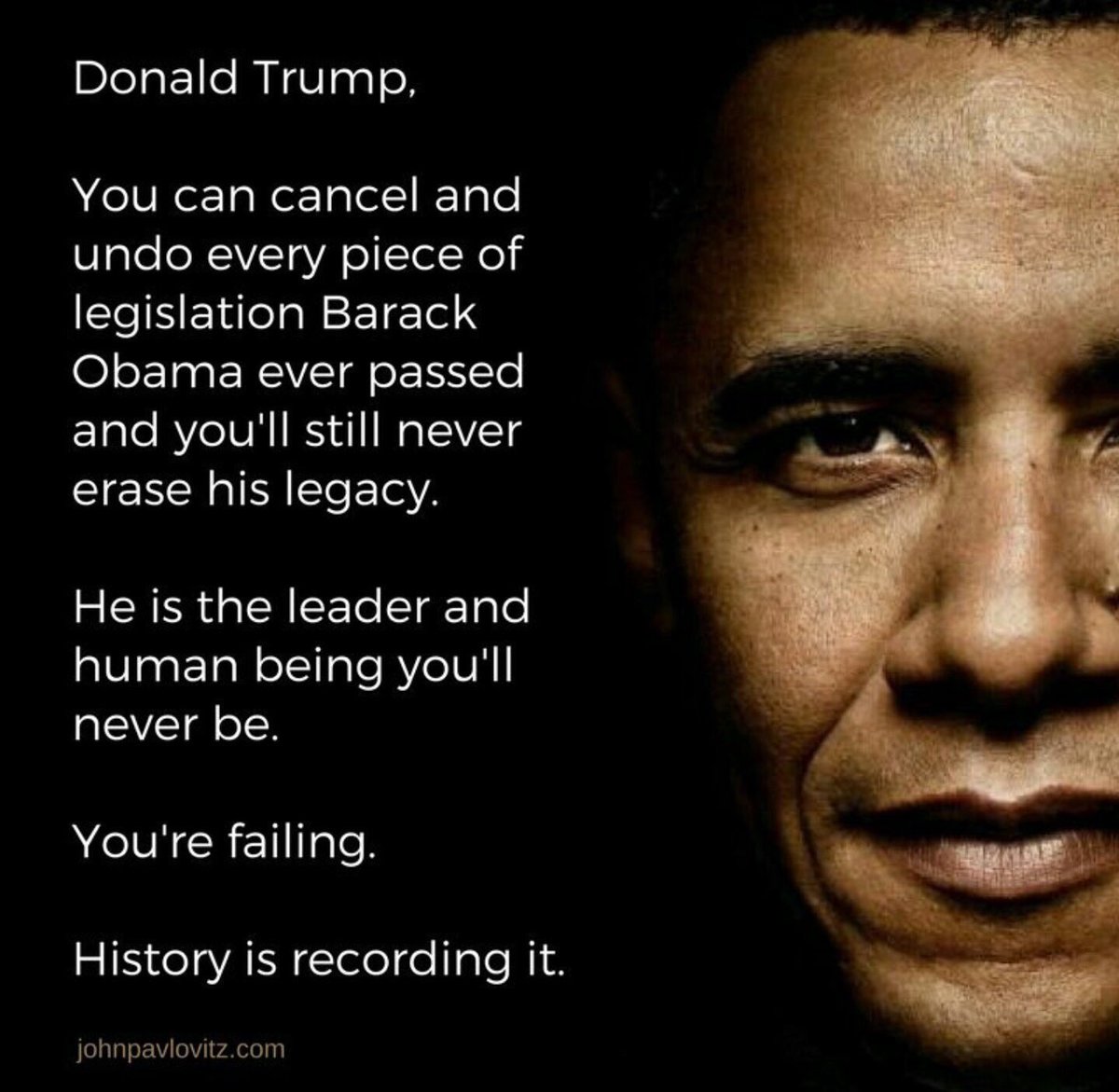 Yaaaup. The man is spending every executive power he has [left] to destroy his predecessor’s legacy — all because Obama embarrassed him in public at the 2011 Correspondent’s dinner. Made his face red for months, before fading into a orange hue...