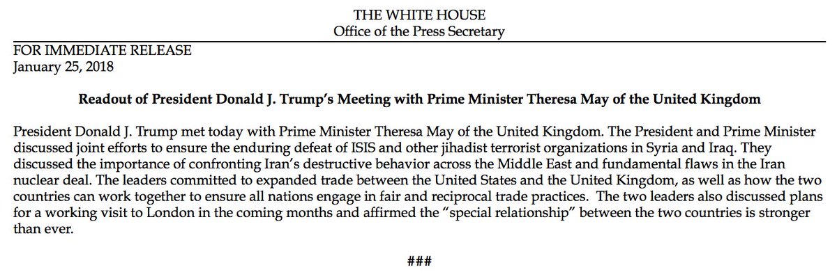 NEW: Pres. Trump, UK Prime Minister Theresa May "discussed plans for a working visit to London in the coming months" at World Economic Forum in Davos, White House says.pic.twitter.com/6no23dMNcf