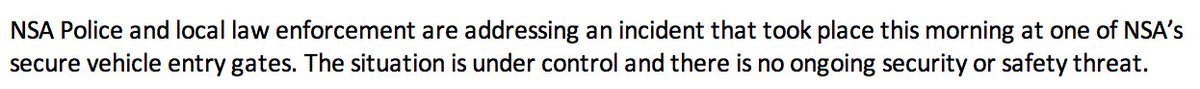 LATEST: “The situation is under control and there is no ongoing security or safety threat," NSA says.http://abcn.ws/2EqBxAR