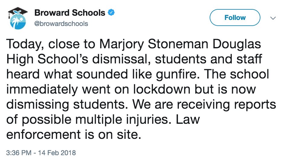 LATEST: Florida Gov. Rick Scott says he is in touch with local officials on school shooting: "We’ll continue to receive updates from law enforcement." http://abcn.ws/2o7DlUn pic.twitter.com/Hyt9u8bw0B