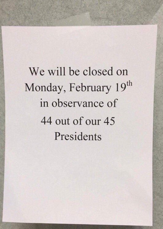 Happy President’s Day except for the dirtbag Russian colluder in The White House.