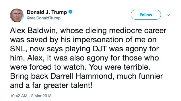 He's more upset about an actor than a school shooting that killed 17 people. Sad.