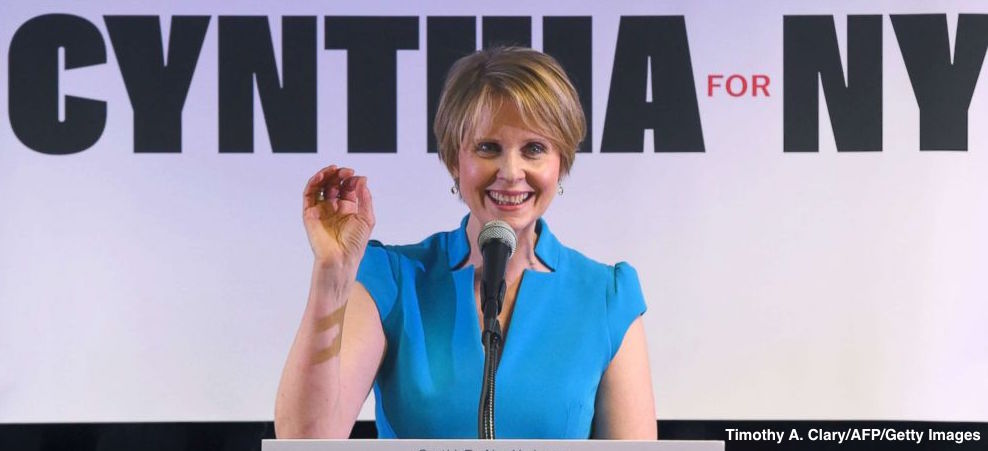 Look at Cynthia Nixon throwing that white power symbol out there. Why isn't Twitter banning this?