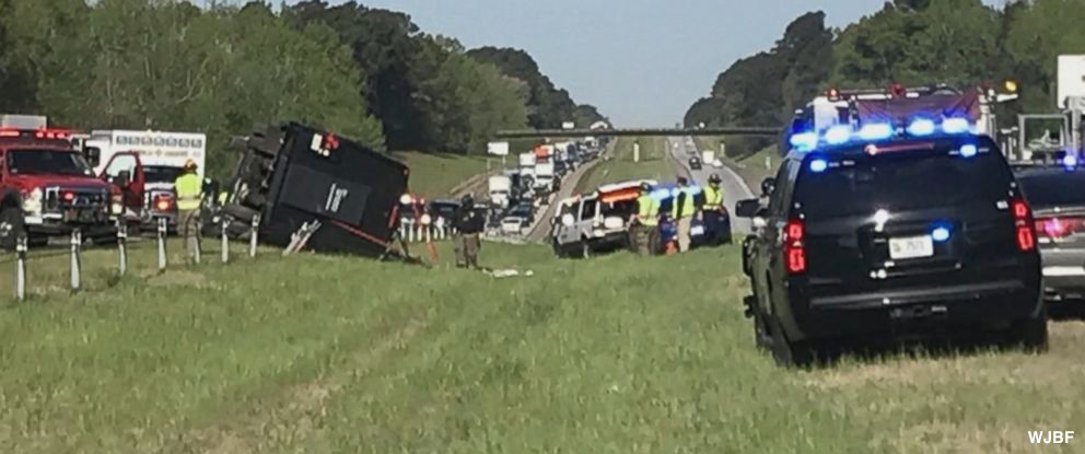 DEVELOPING: Several people injured on overturned tour bus in Columbia County, GA; injuries are non-life threatening. The bus driver has been charged with a DUI.
