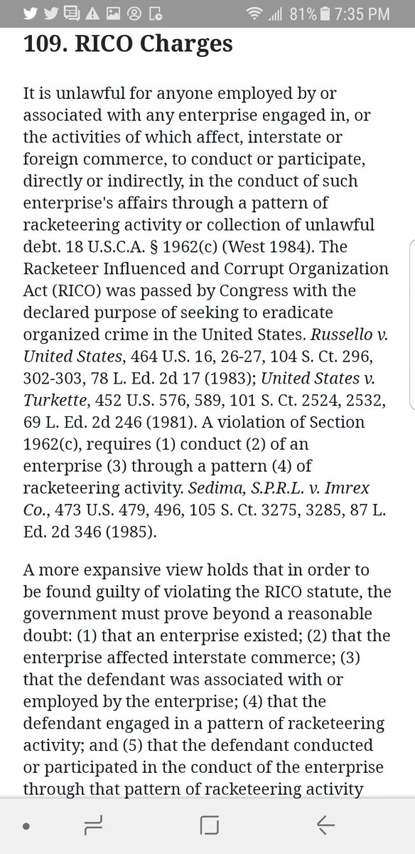 RICO is the Racketeer Influenced and Corrupt Organizations Act. Fits perfectly as a description for the reasoning behind investigating the activities of the Trump organization and all Trump’s cronies.