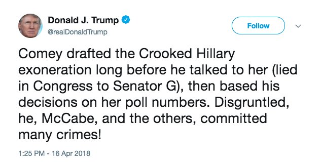Curious why Trumps tweet is time stamped 1:25 PM - 16 Apr 2018....where is he?