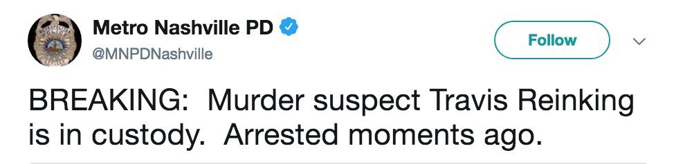 Thank goodness they caught Reinking and hopefully will charge him with first degree murder. In addition, his dad should be charged with manslaughter for the very reason of returning the guns to his son.
