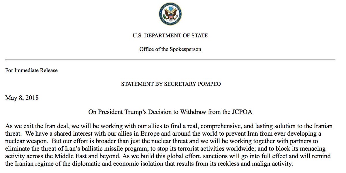 So glad we end diplomatic agreements now without having a planned framework of how to replace them. Let's just wing it.