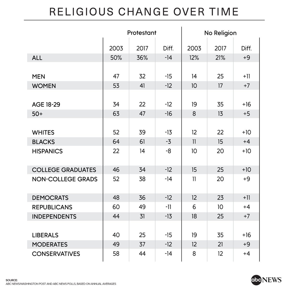 MORE: 48% of evangelical white Protestants identify themselves as Republicans, 31% as political independents and just 14% as Democrats, @ABC News/WaPo poll finds. http://abcn.ws/2ryyLQN pic.twitter.com/DAU0MPan40