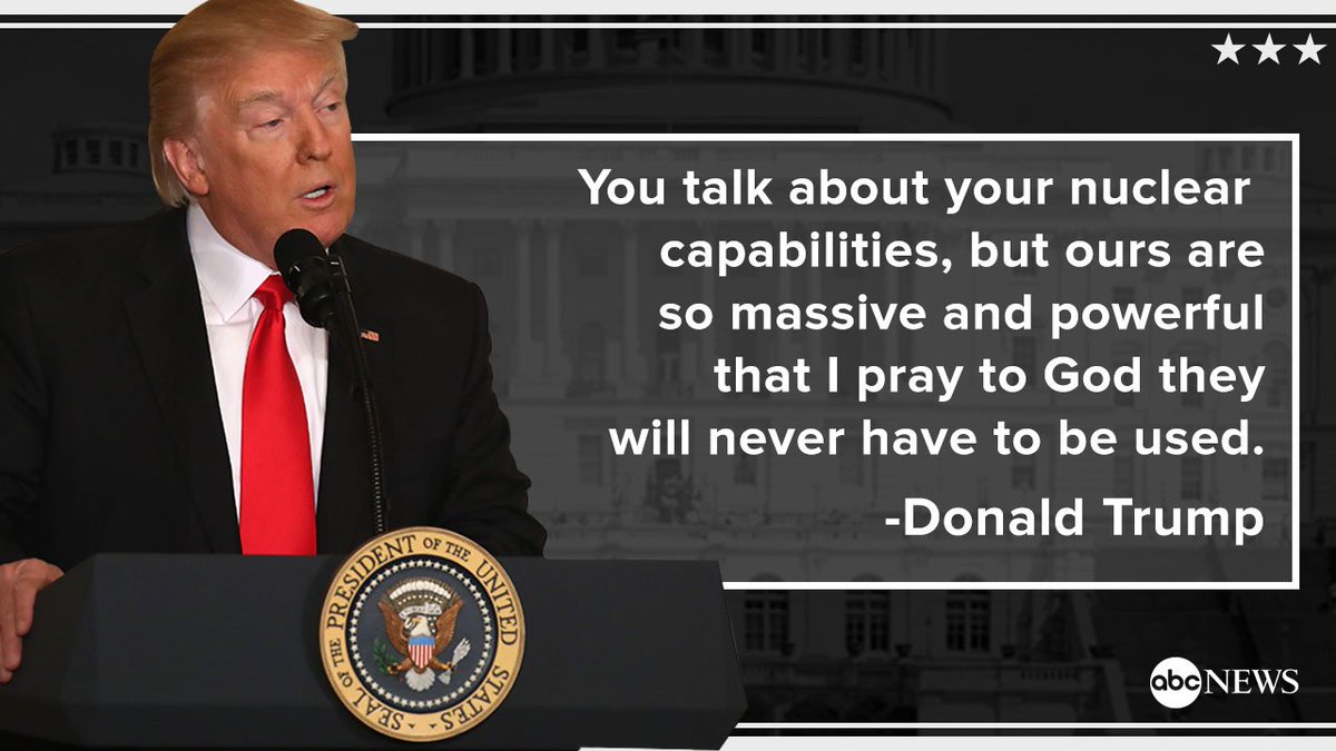 MORE: "You talk about your nuclear capabilities, but ours are so massive and powerful that I pray to God they will never have to be used," Pres. Trump says in letter to Kim Jong Un. https://abcn.ws/2sfsES7 pic.twitter.com/nTO1OTsEcz