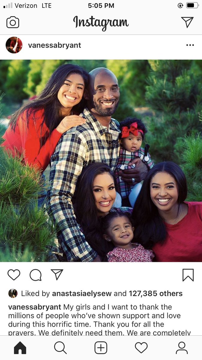 Many of you have shown tribute to Kobe and his family by sending pics to