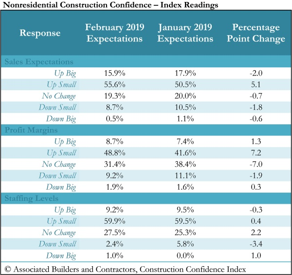 Construction industry leaders remained confident regarding nonresidential construction prospects in February 2019, according to the latest Construction Confidence Index released by ABC today.