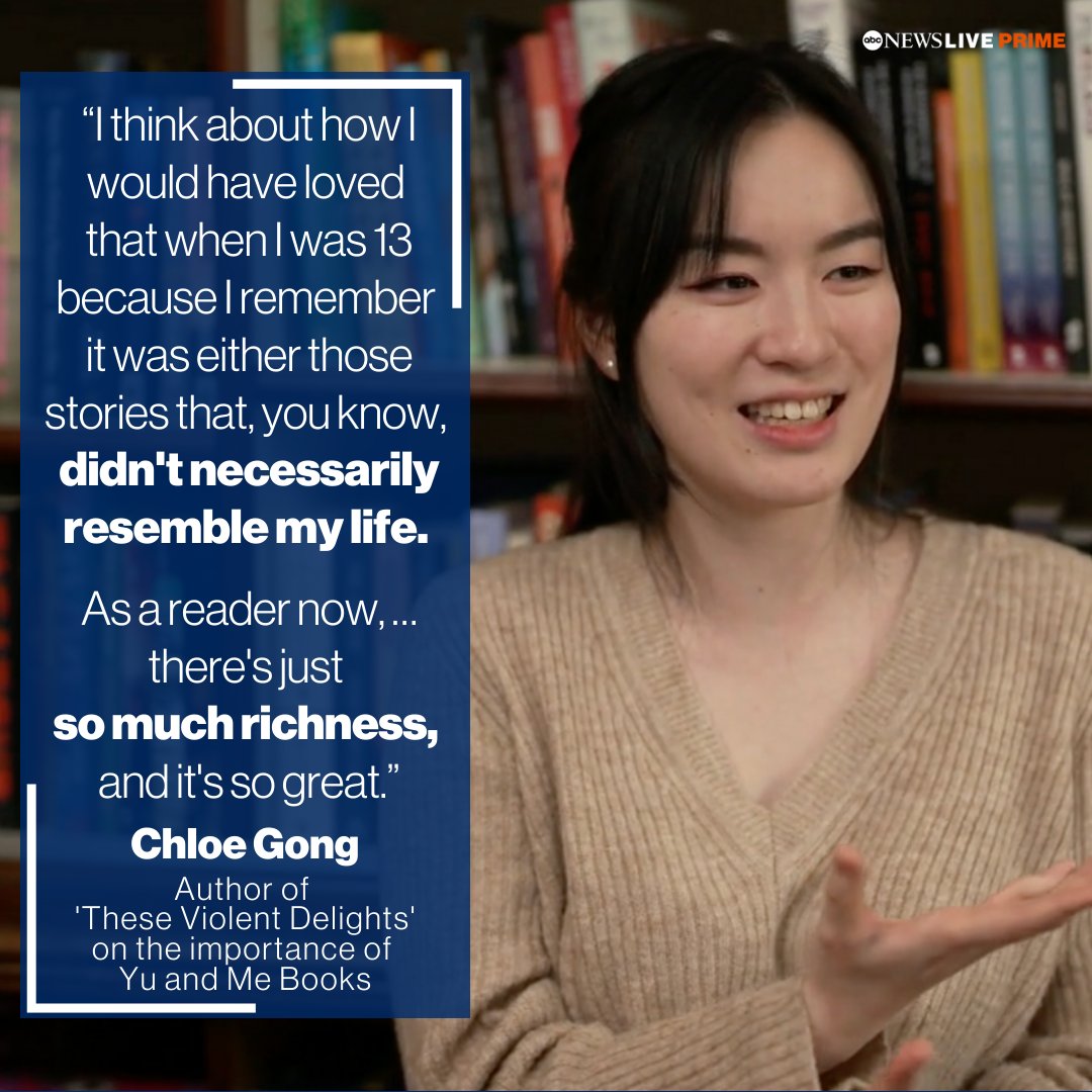 @thechloegong, best-selling author of "These Violent Delights," explains the significance of Yu and Me Books, a New York bookstore featuring hundreds of titles highlighting#AANHPI and immigrant stories.@EvaPilgrim has the full story. ##AANHPIHM https://abcn.ws/3NcGyw8 pic.twitter.com/PEEtofGJL2