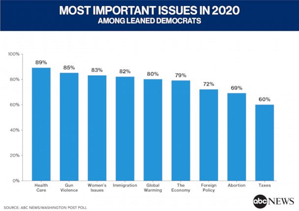 Health care is cited by 89% of leaned Democrats as a top issue in their vote in the general election, per new