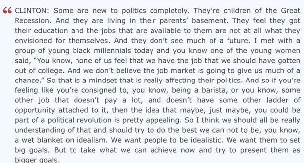 @ABCPolitics@HillaryClinton Honestly, it's sad that she even has to explain this. She said nothing that was insulting to millenials. -