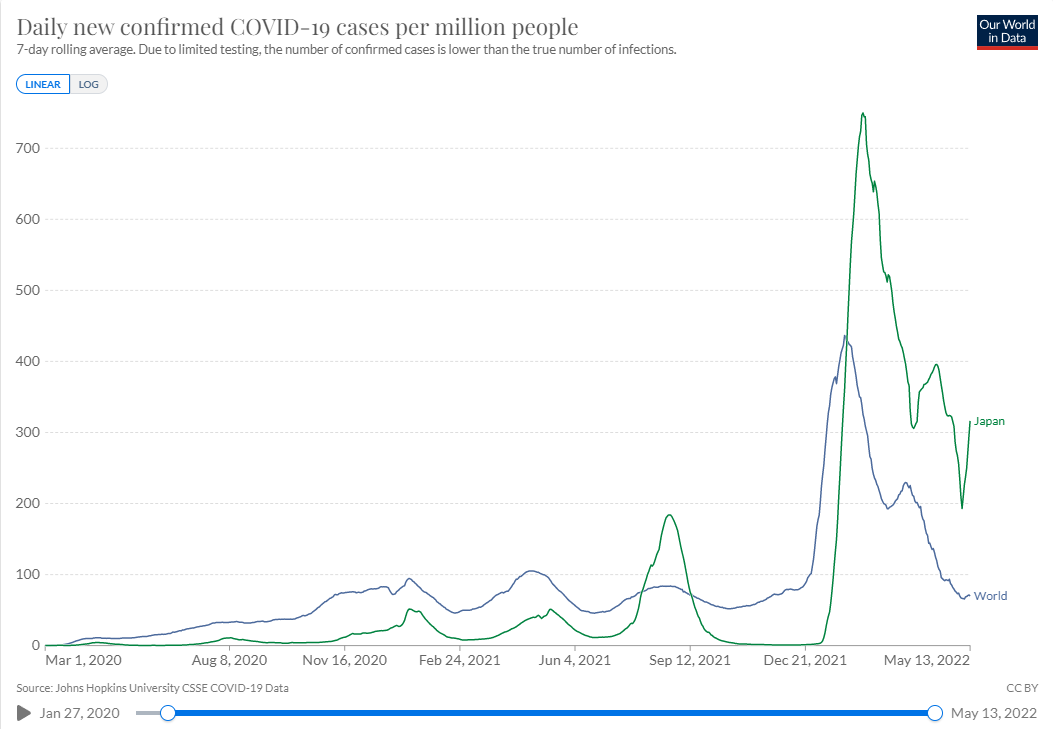 →日本の感染者数は世界平均を「上回り」ほぼ連動 https://twitter.com/MIKITO_777/status/1525436736754819074 …pic.twitter.com/XO4jY9f5KY