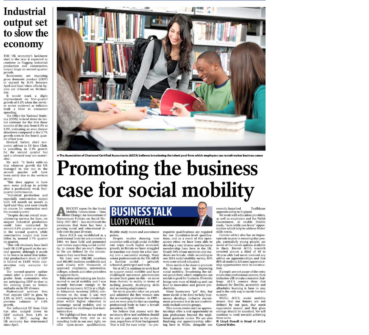 Good to see Head of ACCA Cymru Wales, Lloyd Powell in today's Western Mail, writing about social mobility