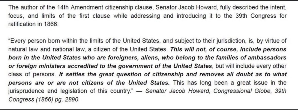 According to the author of the 14th Amendment, everyone at the time of its passage was aware that it did not apply to foreigners.pic.twitter.com/0MU5F06vbJ