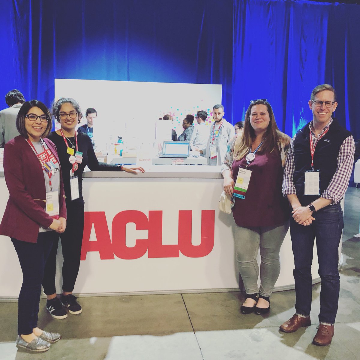 Our Comms Manager, Morgan Keller, with some of the @peoplepower team at the Action Center hub! #ACLUcon18pic.twitter.com/r8zvDJYL7p
