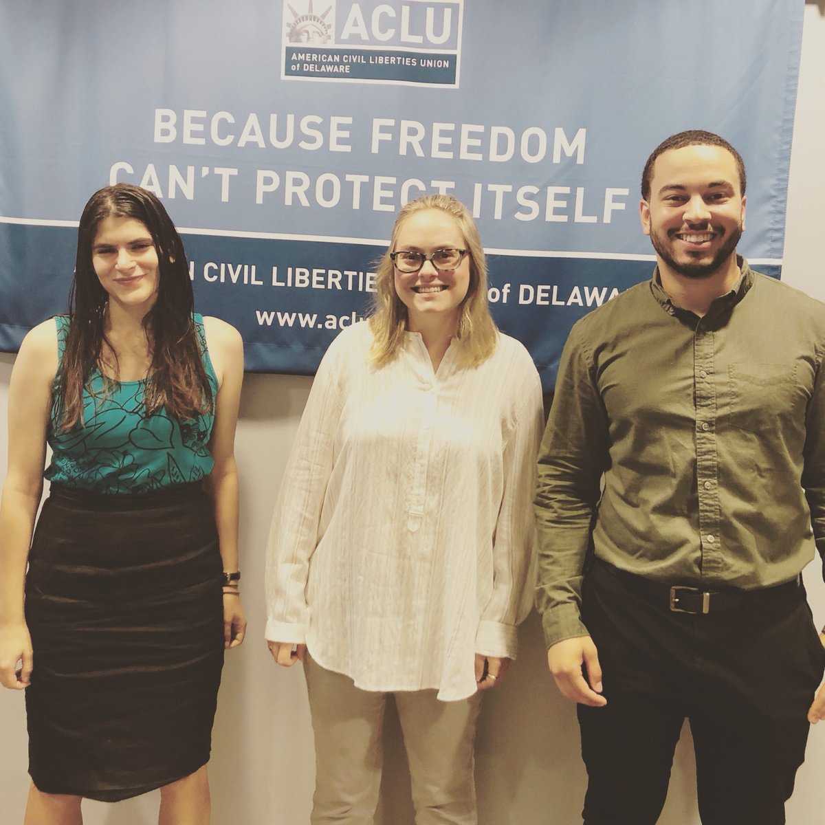 Chris, Thalia and Emily have been working hard since June on every project we’ve given them. This trio has been a great asset to ACLU-DE. Thanks guys!pic.twitter.com/XGfTHl4aeR