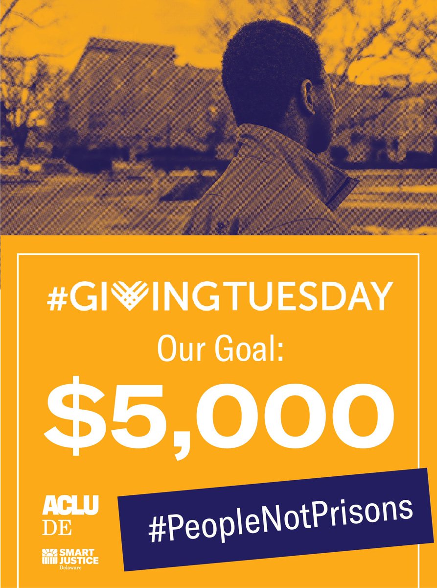 We need our help to give Delaware a better criminal justice system. Will you help us meet our $5,000 goal for #GivingTuesday? Reminder: A $50 gift to help us cut the prison population by 50% will get you a magnet, button and window cling!