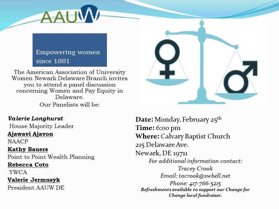 Check out this panel on pay equity that @aauwdelaware is hosting on Monday!pic.twitter.com/eWNucWXIHy