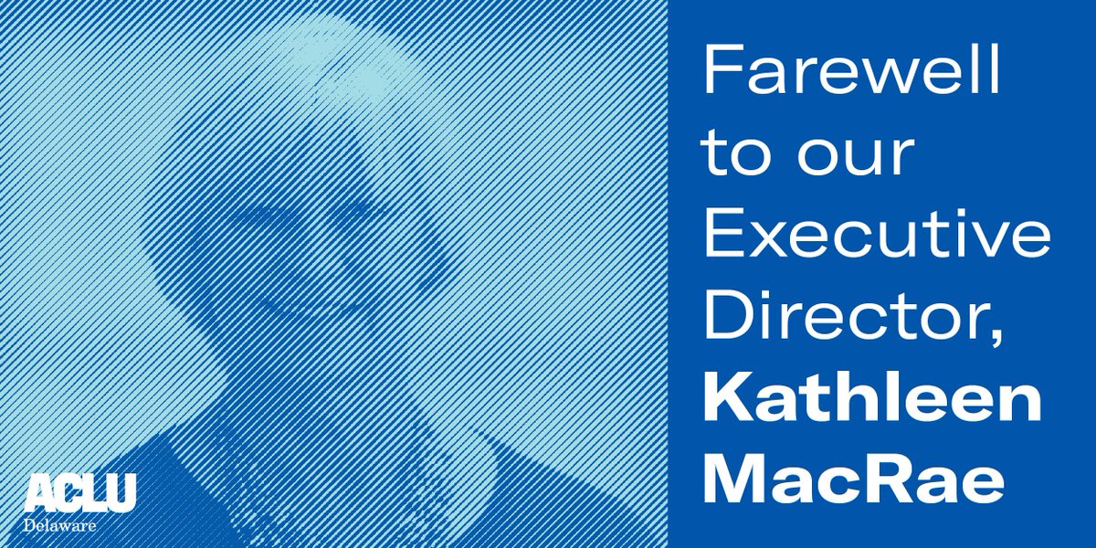 After leading the ACLU of Delaware for more than eight years, Kathleen MacRae, Executive Director, has announced her retirement. We'll miss you, Kathleen! Our Development Director, David Bever, has been appointed Interim Director. Full press release: https://www.aclu-de.org/en/press-releases/aclu-delaware-executive-director-announces-retirement …pic.twitter.com/DlQJfdChKU