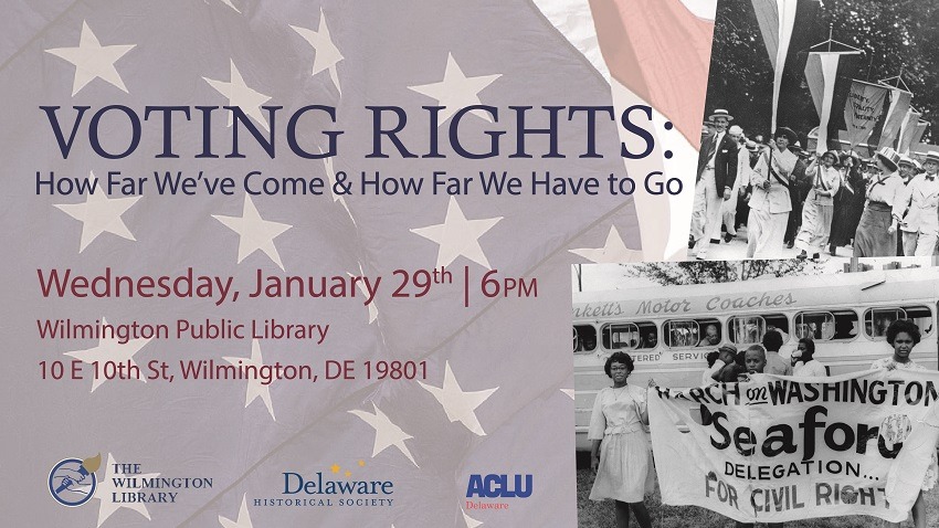 We're teaming up with the Delaware Historical Society & the Wilmington Library for this presentation on Voting Rights in America. Let's talk about how far we've come & how far we still have left to go. This is a free event, but registration is requested: http://bit.ly/2txQjkT pic.twitter.com/uEUpeByrVZ