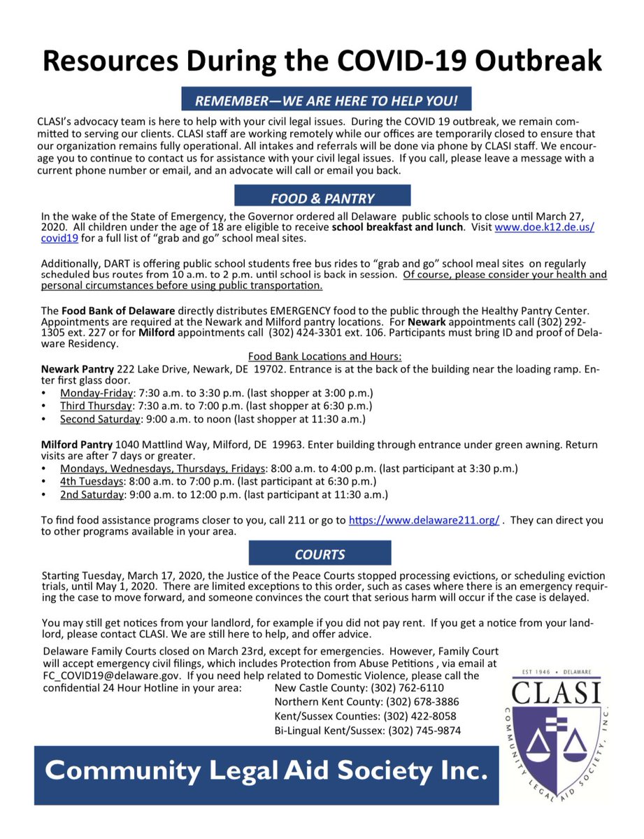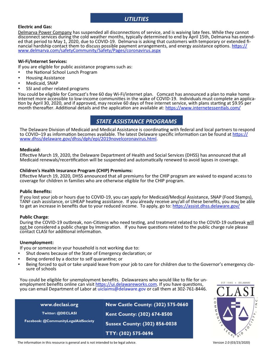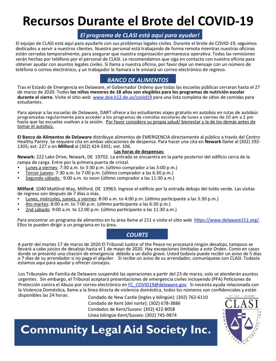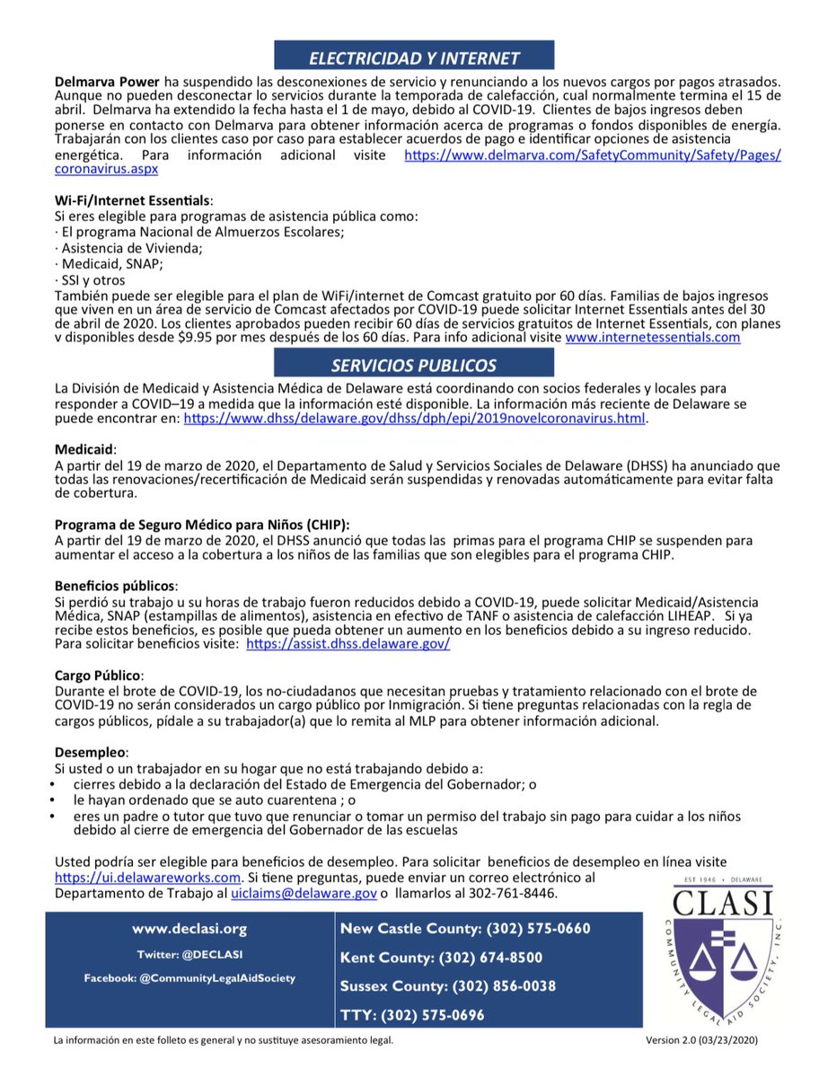 Our friends at @DECLASI have compiled a helpful list of resources in Delaware, including legal and financial help, in English & en Español. Please share!pic.twitter.com/JBfSAFThWn