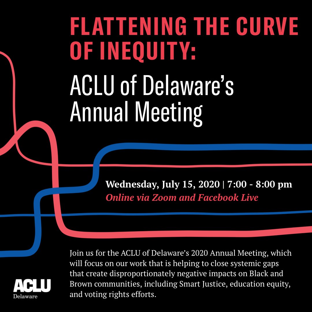 Join us for our 2020 Annual Meeting, to be held virtually. You'll learn more about how we are guarding & advancing civil liberties in the age of COVID-19, protests of police violence, & abuses of executive power. RSVP to receive the Zoom link: https://www.aclu-de.org/en/events/flattening-curve-inequity-2020-annual-meeting …pic.twitter.com/uVM9OOFSUr