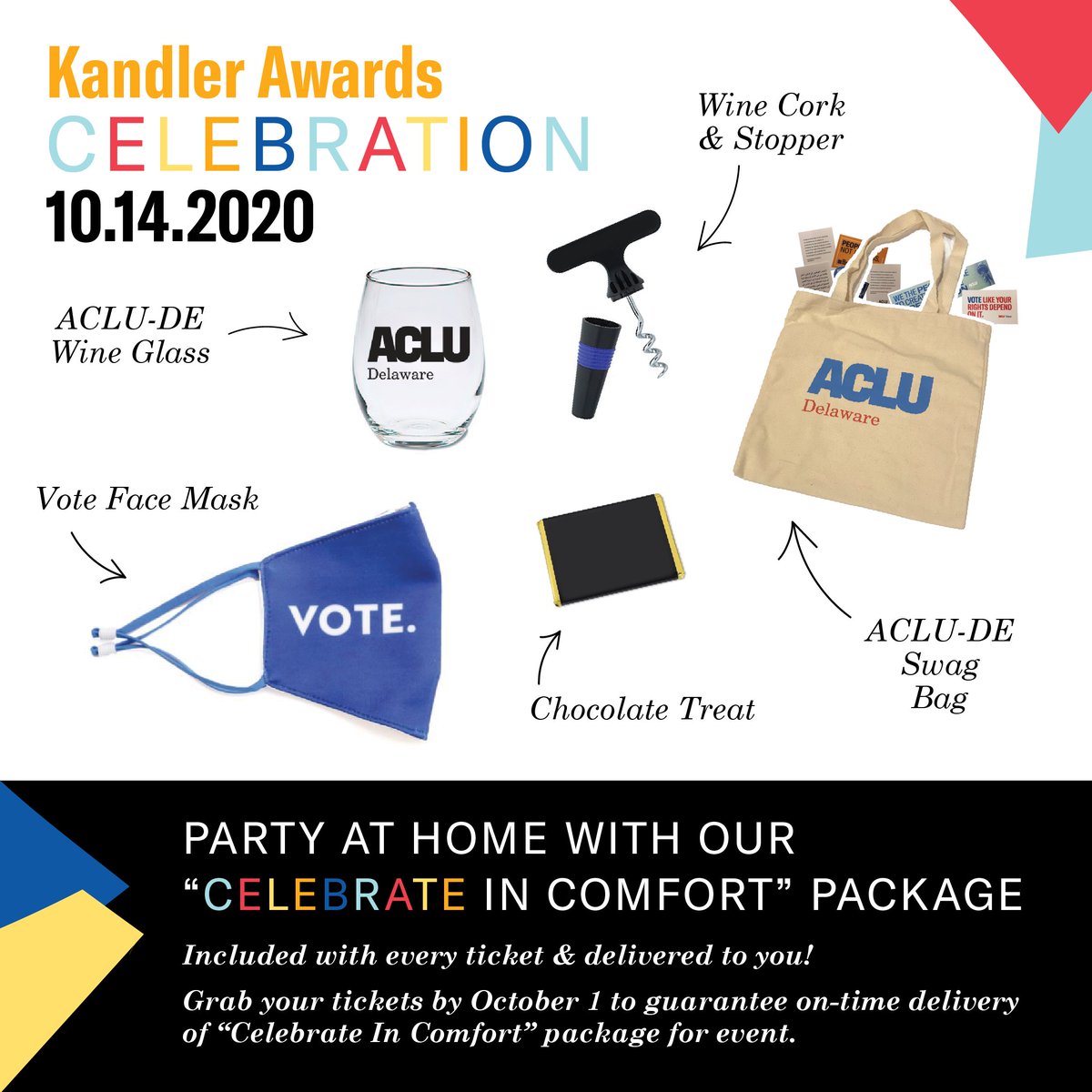 Every ticket to our Kandler Celebration includes a "Celebrate in Comfort" package, delivered right to you! We can't wait to celebrate with you on October 14. Grab your tickets or sponsorship today: http://one.bidpal.net/kandler2020/welcome …pic.twitter.com/SEo8i12DlR